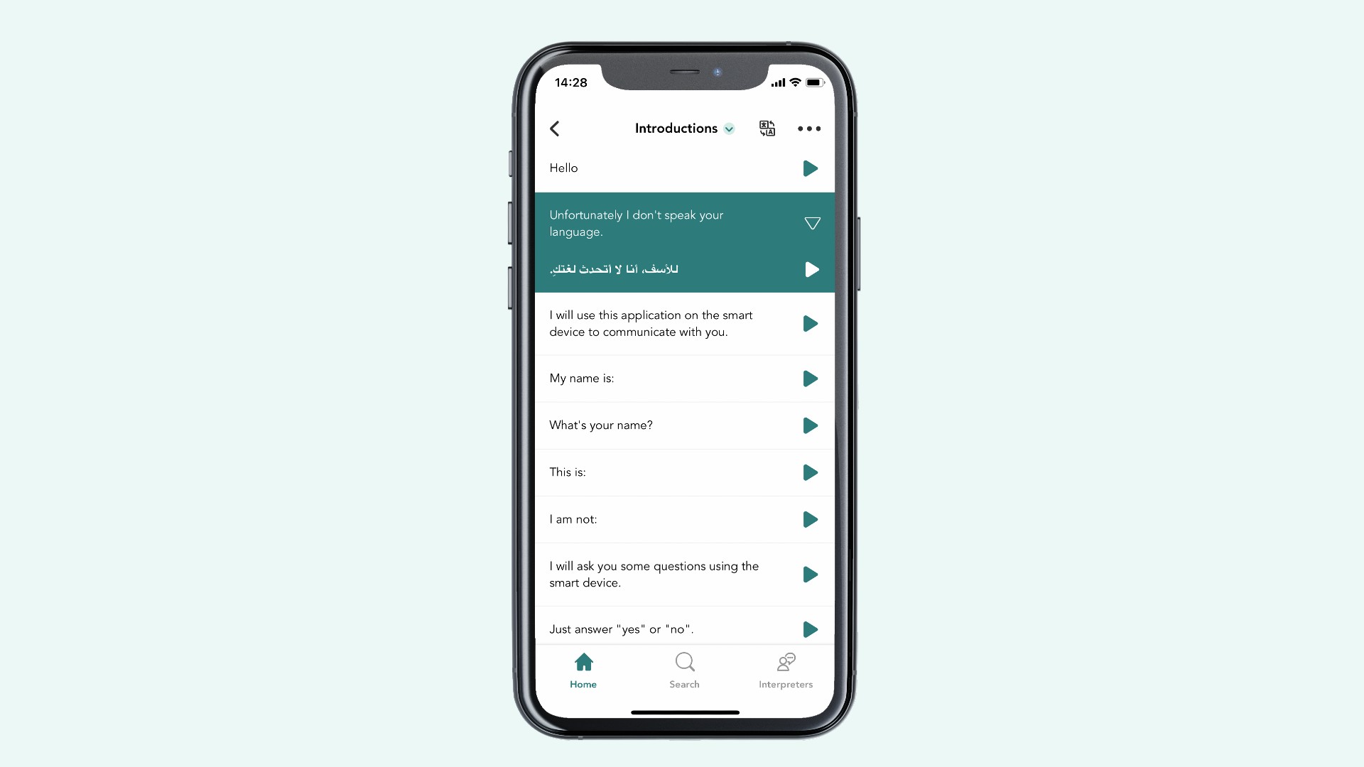 The app already comes with phrases categoried after healthcare areas, for example ambulance, pain and neurology, trauma or health centre.