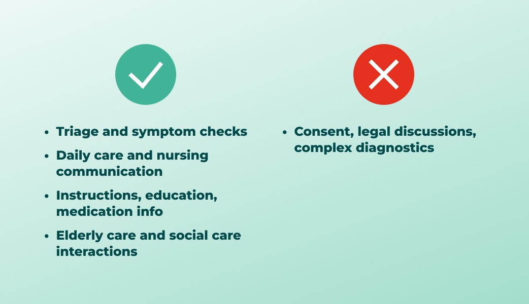 ⚠️ Consent, legal discussions, complex diagnostics